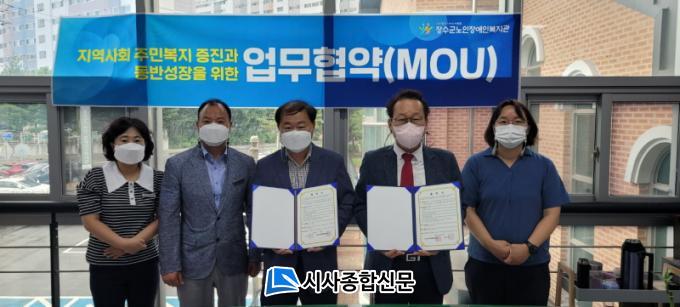 [½Ã»çÁ¾ÇսŹ® = ¿À½ÂÅà ±âÀÚ] Àå¼ö±ºÀº 29ÀÏ Àå¼ö±º³ëÀÎÀå¾ÖÀκ¹Áö°ü°ú »ê¸²Ä¡À¯ ¼ºñ½º Á¦°ø ¹× Ȱ¼ºÈ¸¦ À§ÇØ ¾÷¹«Çù¾àÀ» ü°áÇß´Ù.