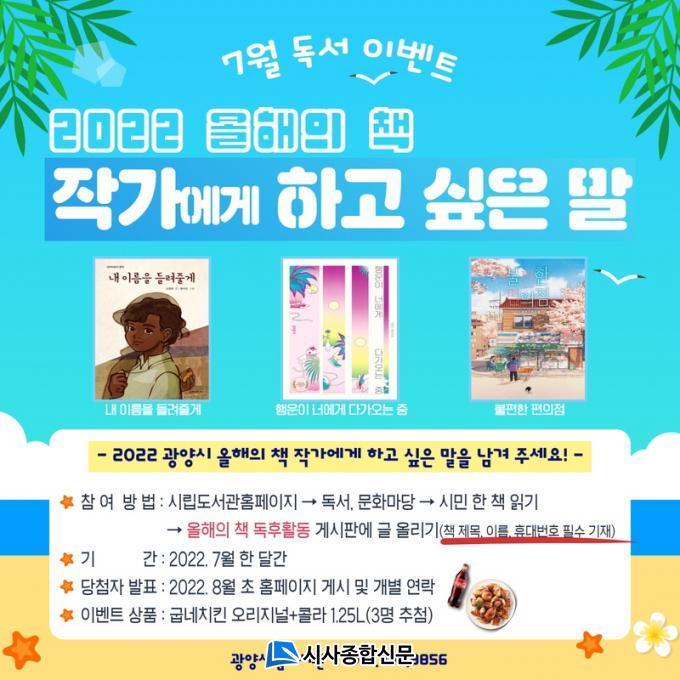 ¡®2022 ¿ÃÇØÀÇ Ã¥¡¯µ¶¼ À̺¥Æ®´Â ±¤¾ç½Ã¹ÎÀÌ¸é ´©±¸µçÁö Âü¿©ÇÒ ¼ö ÀÖ°í, ¸Å¿ù Ãß÷À» ÅëÇØ ¾ÆÀ̽ºÅ©¸², ġŲ µîÀÇ ±âÇÁƼÄÜÀ» ¹ÞÀ» ¼ö ÀÖ´Ù. ±è¹Ì¶ó µµ¼°ü¿î¿µ°úÀåÀº ¡°µ¶¼ À̺¥Æ®¸¦ ÅëÇØ ±¤¾ç½Ã¹ÎÀÌ ¿ÃÇØÀÇ Ã¥¿¡ ´ëÇÑ °ü½ÉÀ» °®°í, Ã¥ Àд Áñ°Å¿òÀ» °øÀ¯ÇÏ±æ ¹Ù¶õ´Ù¡±°í ¸»Çß´Ù.