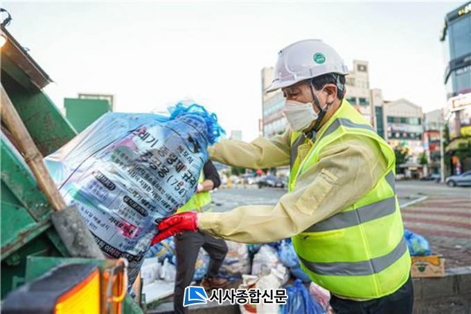 [½Ã»çÁ¾ÇսŹ® = ¿À½ÂÅà ±âÀÚ] ¹ÚÈ«·ü ¸ñÆ÷½ÃÀåÀÌ 1ÀÏ ¿ÀÀü 5½Ã 30ºÐ Æòȱ¤Àå °ø¿µÁÖÂ÷Àå¿¡¼ ȯ°æ½Ç¹«¿ø°ú »ýȰ¾²·¹±â¸¦ û¼ÒÂ÷·®¿¡ ½ÇÀ¸¸ç ¹Î¼±8±â ½ÃÀåÁ÷ ùÀÏÁ¤À» ½ÃÀÛÇß´Ù.