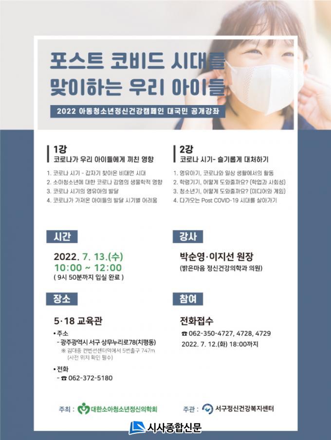Áö¿ª ±³»ç¿Í Çкθð µî 100¿© ¸íÀ» ´ë»óÀ¸·Î ±¤ÁÖ 5.18 ±³À°°ü(Ä¡Æòµ¿ ¼ÒÀç)¿¡¼ ÁøÇàµÇ´Â °Á¿¡´Â ¼Ò¾Æ․û¼Ò³â Á¤½Å°Ç°ÀÇÇаú Àü¹®ÀǸ¦ °»ç·Î ÃʺùÇÏ¿© ¡ã 1°, Äڷγª°¡ ¿ì¸® ¾ÆÀ̵鿡°Ô ³¢Ä£ ¿µÇâ ¡ã 2°, Äڷγª ½Ã±â, ½½±â·Ó°Ô ´ëóÇϱ⸦ ÁÖÁ¦·Î °Àǰ¡ ÁøÇàµÈ´Ù.