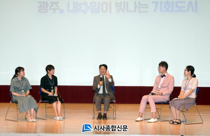 À̳¯ ¡®½Ãû °øÁ÷ÀÚ¿Í ÅäÅ©¡¯´Â ½ÃÁ¾ ¿ôÀ½°ú ¹Ú¼ö°¡ ³ÑÄ¡¸é¼µµ ¶§·Ð Á÷¿øµéÀÇ ¿¹»óÄ¡ ¸øÇÑ ³¯Ä«·Î¿î Áú¹®ÀÌ ÅÍÁ® ³ª¿Ô°í, ° ½ÃÀåµµ ±¤ÁÖ½ÃÁ¤¿¡ ÀÓÇÏ´Â ÀÚ¼¼¿Í öÇÐ µîÀº ÁøÁöÇÏ°Ô ´äº¯ÇÏ´Â ÇÑÆí, °ï¶õÇÑ Áú¹®¿¡ ´ëÇØ¼´Â ÀçÄ¡ÀÖ°Ô ¹Þ¾Æ³Ñ±â±âµµ Çß´Ù.