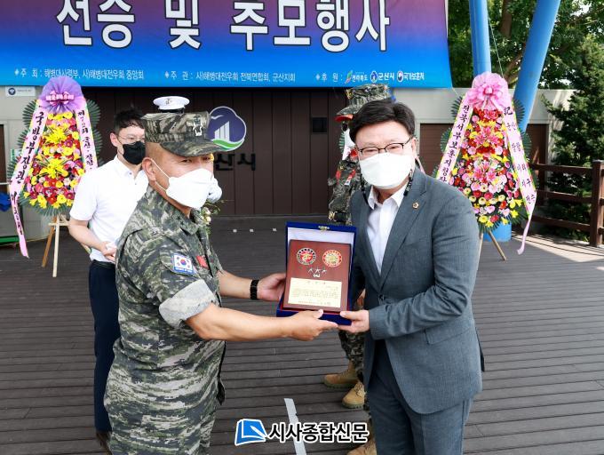 [½Ã»çÁ¾ÇսŹ® = ¿À½ÂÅà ±âÀÚ] Àü¶óºÏµµÀÇȸ ¹®½Â¿ì ÀÇ¿ø(´õºÒ¾î¹ÎÁÖ´ç, ±º»ê4)Àº Áö³ 10ÀÏ ¡°Á¦72Áֳ⠱º»ê¡¤ÀåÇס¤À̸®Áö±¸ÀüÅõ Àü½ÂÇà»ç¡±¿¡¼ ÇØº´´ë»ç·É°ü(±èżº ÁßÀå)À¸·Î ºÎÅÍ °¨»çÆÐ¸¦ ¼ö»óÇß´Ù.