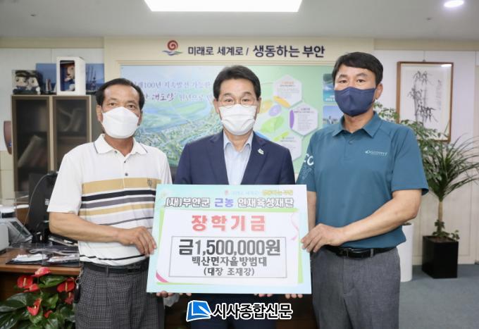 [½Ã»çÁ¾ÇսŹ® = ¿À½ÂÅà ±âÀÚ] ºÎ¾È±º ¹é»ê¸é ÀÚÀ²¹æ¹ü´ë(´ëÀå Á¶Àç°)¿¡¼´Â Áö³ 12ÀÏ ºÎ¾È±º ±Ù³óÀÎÀçÀ°¼ºÀç´ÜÀ» ¹æ¹®ÇÏ¿© ¹Ì·¡ ÀÎÀçÀ°¼º ÀåÇÐ±Ý 150¸¸¿øÀ» ±âŹÇß´Ù.