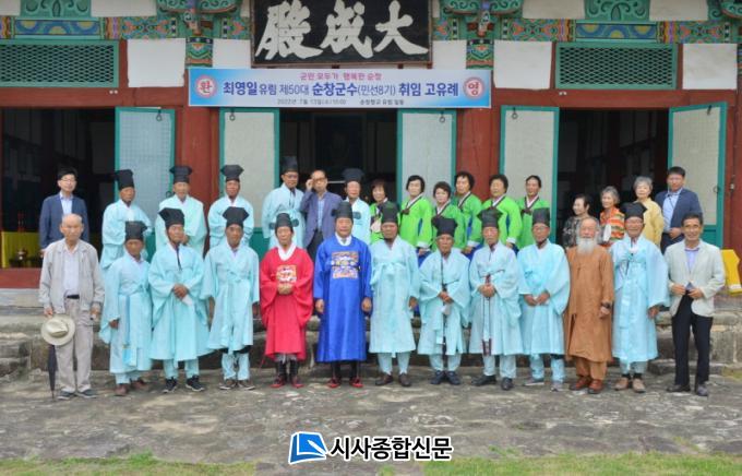 À¯¾çÈñ Àü±³´Â ¡°¹Î¼± 8±â ÃÖ¿µÀÏ ¼øÃ¢±º¼ö ÃëÀÓÀ» Áø½ÉÀ¸·Î ÃàÇÏÇÑ´Ù¡±°í ¸»ÇÏ°í ¡°ÃÖ¿µÀÏ ±º¼ö´Â ¿À·¡ Àü ºÎÅÍ Çâ±³ À¯¸²À¸·Î Ȱµ¿ÇÏ¸é¼ °øÀÚ´ÔÀÇ ÀÎ, ÀÇ, ¿¹, Áö(ìÒ, ëù, çß, òª) »ç»óÀ» Àϻ󿡼 ¹è¿ì°í, ½ÇõÇϱâ À§ÇØ ²ÙÁØÈ÷ ³ë·ÂÇØ ¿ÔÀ½À» ¾Ë±â¿¡ ±× ¸¶À½À» ¹ÙÅÁÀ¸·Î ¼øÃ¢±º ¹ßÀü¿¡ Å« ±â¿©¸¦ ÇÒ °ÍÀ¸·Î ±â´ëÇÑ´Ù¡±°í ¹àÇû´Ù. ¾Æ¿ï·¯ °íÀ¯·Ê¸¦ ¸¶Ä¡°í ¼øÃ¢Çâ±³ ¿©¼ºÀ¯µµÈ¸¿øÀÌ ¼Õ¼ö ¸¸µç À½½ÄÀ» ³ª´©¸ç, ÃÖ¿µÀÏ ¼øÃ¢±º¼ö ÃëÀÓÀ» ÃàÇÏÇß´Ù.