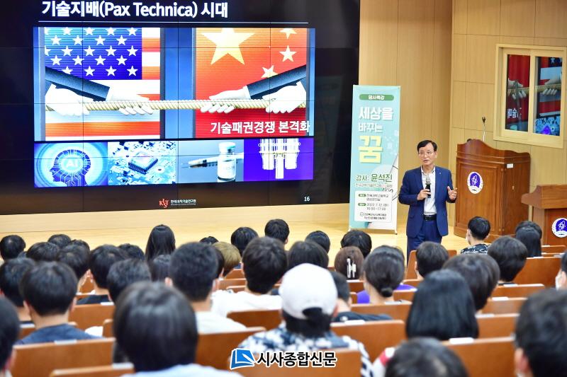 À± ¿øÀåÀº °¿¬¿¡¼ "°úÇÐÀ» ÅëÇØ ¼¼»óÀ» ¹Ù²Ù´Â ²ÞÀ» ²Ù°í, ±×°ÍÀ» À§ÇØ ²ÙÁØÈ÷ Á¤ÁøÇÏ´Â »ç¶÷¸¸ÀÌ Çõ½ÅÀ» ÀÏÀ¸Å³ ¼ö ÀÖ´Ù¡±¸ç °íÇâ Àͻ꿡 ÀÖ´Â ÀüºÏ°úÇаíµîÇб³ ÇлýµéÀ» µ¶·ÁÇßÀ¸¸ç, ÇлýµéÀÇ Àû±ØÀûÀÎ Áú¹® °ø¼¼¿¡ ¡°ÀüºÏ °úÇбâ¼úÀÇ ¹Ì·¡¿Í ´ëÇѹα¹ °úÇбâ¼úÀÇ ¹Ì·¡°¡ ¹à´Ù¡±¸ç ȯÇÑ ¿ôÀ½À» Áö¾îº¸¿´´Ù.