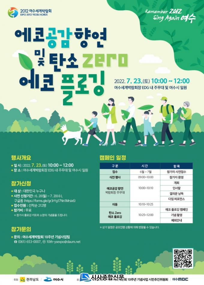 À̾îÁö´Â ¡®Åº¼Ò Á¦·Î ¿¡ÄÚ Ç÷αë(plogging, ´Þ¸®±â¸¦ ÇÏ¸ç ¾²·¹±â¸¦ ÁÝ´Â ¿îµ¿)¡¯ Çà»ç´Â ÇØ¾çȯ°æ º¸È£¸¦ À§ÇØ µ¹»ê ¹«½½¸ñ¿¡¼ ÁøÇàµÉ ¿¹Á¤ÀÌ´Ù. Âü¼®ÀÚµéÀº ¹ö½º¿¡ ž½ÂÇØ ȯ°æº¸È£ °ÀǸ¦ µéÀ¸¸ç ¹«½½¸ñÀ¸·Î À̵¿ÇÑ ÈÄ, ¿Â¿Áúȯ¿¡ ´ëºñÇÑ ±â³äǰ(¸ðÀÚ)°ú »ý¼ö µîÀ» Áö±Þ¹Þ°í Ç÷α뿡 Âü¿©ÇÏ°Ô µÈ´Ù. Ç÷αë Á¾·á ÈÄ¿¡´Â °£´ÜÇÑ °£½Äµµ ¹èºÎµÉ ¿¹Á¤ÀÌ´Ù. Âü°¡ ¹®ÀÇ´Â ¿©¼ö¼¼°è¹Ú¶÷ȸ 10Áֳ⠱â³ä»ç¾÷ÆÀ(¢Ï061-653-0007)À¸·Î ÇÏ¸é µÈ´Ù.