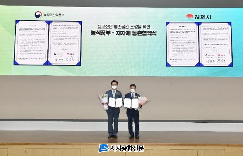 Áö³ÇØ 6¿ù ³óÃÌÇù¾à ´ë»óÀ¸·Î ¼±Á¤µÈ ±èÁ¦½Ã´Â ³óÃÌ °ø°£ Àü·«°èȹ ¹× ³óÃÌ»ýȰ±Ç Ȱ¼ºÈ °èȹ ¼ö¸³¿¡ °üÇÏ¿© ³ó¸²Ãà»ê½ÄǰºÎ¿Í ÃÖÁ¾ ÇÕÀǸ¦ °ÅÃÄ Çù¾àÀ» ü°áÇÏ°Ô µÇ¾ú´Ù.