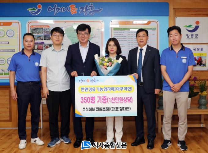 [½Ã»çÁ¾ÇսŹ® = ¿À½ÂÅà ±âÀÚ] ¢ßÁø¼³ÃÊÇØ(´ëÇ¥ Á¤´ÙÇö)´Â 15ÀÏ ¿°ÇØÇÇÇØ¿¡ È¿°ú°¡ Àִ ģȯ°æÀ¯±â³ó¾÷ÀÚÀç(¾ÆÄí¾ÆÁø) 350º´À» ÀåÈﱺ¿¡ Àü´ÞÇß´Ù.