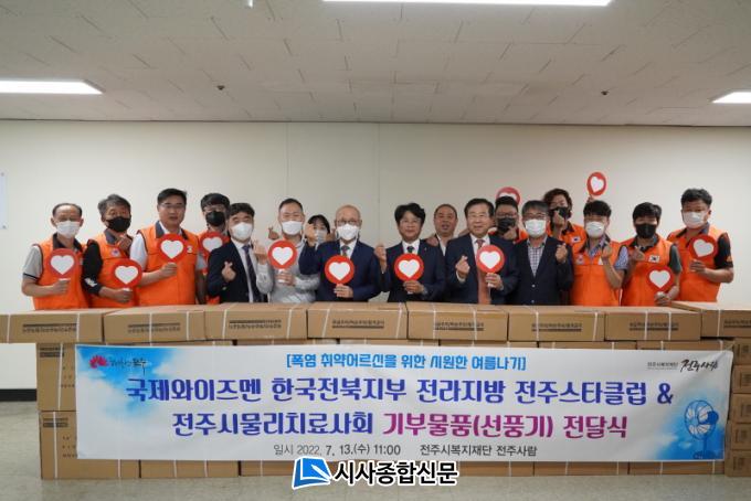 [½Ã»çÁ¾ÇսŹ® = ¿À½ÂÅà ±âÀÚ] ±¹Á¦¿ÍÀÌÁî¸à Çѱ¹ÀüºÏÁöºÎ Àü¶óÁö¹æ ÀüÁÖ½ºÅ¸Å¬·´(ȸÀå À̱âÅÃ)°ú ÀüÁֽà ¹°¸®Ä¡·á»çȸ(ȸÀå ¾ç¿µ½Ä)Àº Áö³ 13ÀÏ ¿©¸§Ã¶ ¹«´õÀ§¿¡ Ãë¾àÇÑ ¾î¸£½ÅÀ» À§ÇÑ ¼±Ç³±â(¾à 160¸¸ ¿ø»ó´ç) 40´ë¸¦ ÀüÁֽú¹ÁöÀç´Ü ¡®ÀüÁÖ»ç¶÷¡¯¿¡ ±âºÎÇß´Ù.