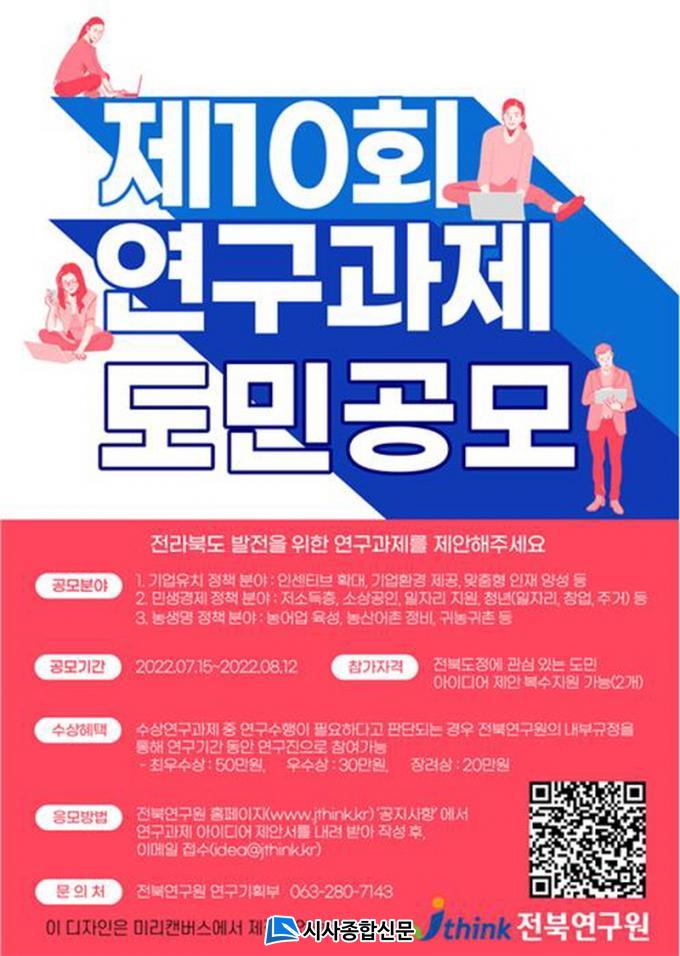 ÀüºÏ¿¬±¸¿øÀº µµ¹Î ¹ÐÂøÇü Á¤Ã¥°³¹ßÀ» À§ÇØ Á¦10ȸ ¡®¿¸° ¿¬±¸, ÁÁÀº ¿¬±¸¡¯ µµ¹Î °ø¸ð¸¦ ½Ç½ÃÇÑ´Ù°í 7¿ù 15ÀÏ ¹àÇû´Ù. ÀüºÏ¿¬±¸¿øÀº ¡®µµ¹Î°ú ÇÔ²² ÇÏ´Â ¿¬±¸¿ø¡¯À» ¸ðÅä·Î µµ¹ÎÀÌ ¿¬±¸°úÁ¦ ¹ß±¼¿¡ Âü¿©ÇÒ ¼ö ÀÖ´Â µµ¹Î°ø¸ð¸¦ ¿¬ 2ȸ ½ÃÇàÇϰí ÀÖ´Ù.