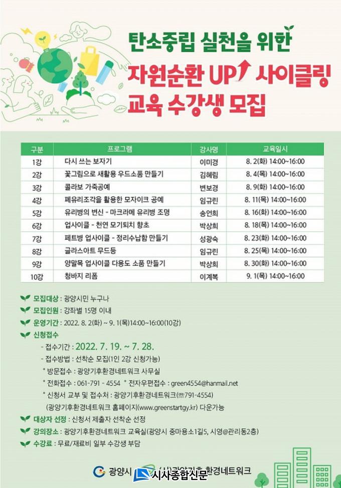 ¾÷»çÀÌŬ¸µÀº ÀçȰ¿ëǰÀ̳ª ¹ö·ÁÁö´Â ÀÚ¿ø¿¡ µðÀÚÀÎ ¶Ç´Â Ȱ¿ëµµ¸¦ ´õÇØ °¡Ä¡ ÀÖ´Â ´Ù¾çÇÑ Á¦Ç°À¸·Î Àçź»ý½ÃŰ´Â °ÍÀ» ¸»ÇÑ´Ù.À̹ø ±³À°ÇÁ·Î±×·¥Àº 8¿ù 2ÀÏ~9¿ù 1ÀÏ È, ¸ñ¿äÀÏ 2½Ã°£¾¿ 10Â÷·Ê¿¡ °ÉÃÄ ¹«·á·Î ¿î¿µµÇ°í ÀϺΠÇÁ·Î±×·¥Àº Àç·áºñ ÀϺΰ¡ ÀںδãÀ¸·Î ÁøÇàµÈ´Ù.