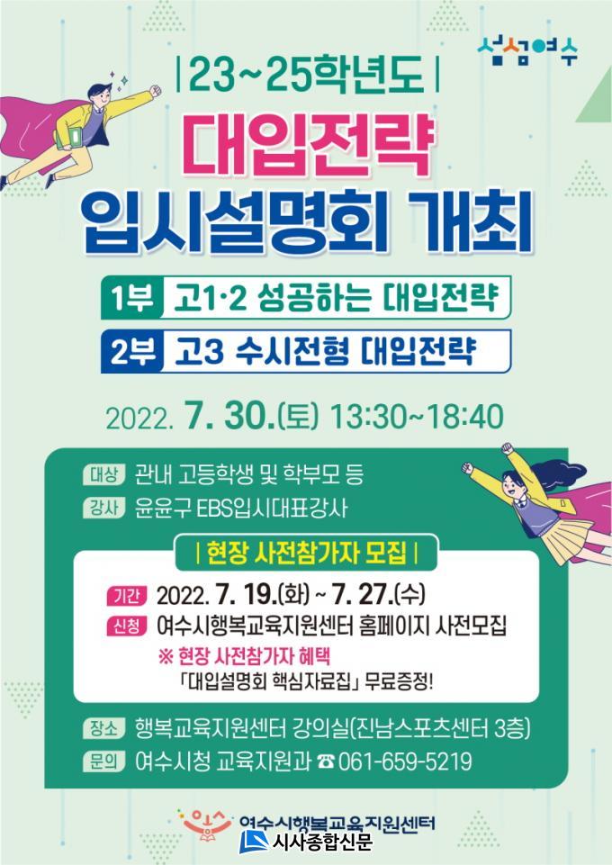 | ¿©¼ö½Ã, EBS À±À±±¸ °»ç ÃÊû ´ëÀÔÀü·« ÀԽü³¸íȸ °³ÃÖ 7¿ù 30ÀÏ ¿ÀÈÄ 1½Ã 30ºÐ Çູ±³À°Áö¿ø¼¾ÅÍ¡¦Çлý, Çкθð 120¸í ¼±Âø¼ø ¸ðÁý |