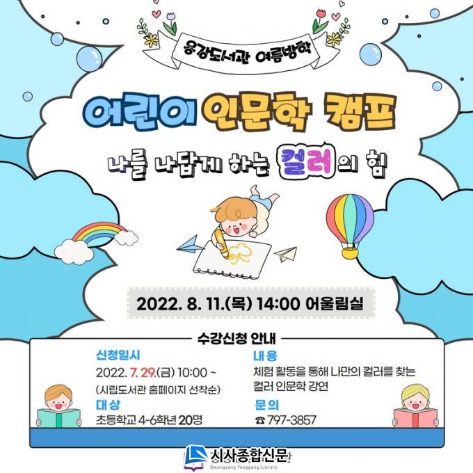 Âü¿©ÀÚ ½ÅûÀº 7¿ù 29ÀÏ ¿ÀÀü 10½ÃºÎÅÍ ±¤¾ç½Ã¸³µµ¼°ü ȨÆäÀÌÁö(lib.gwangyang.go.kr)¸¦ ÅëÇØ ÇÒ ¼ö ÀÖ°í, ¼ö° ½Åû°ú ´Ù¸¥ ±Ã±ÝÇÑ »çÇ×Àº ½Ã¸³µµ¼°ü ȨÆäÀÌÁö¸¦ ¹æ¹®Çϰųª ±¤¾ç¿ë°µµ¼°ü(¢Ï061-797-3857)À¸·Î ¹®ÀÇÇÏ¸é ¾È³»¹ÞÀ» ¼ö ÀÖ´Ù.