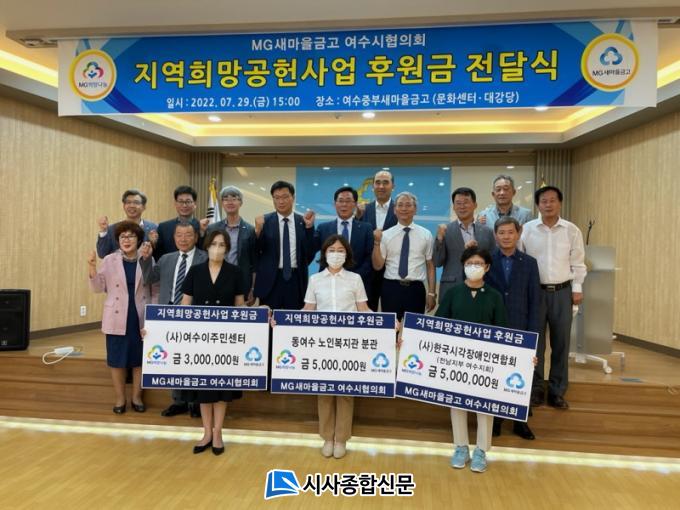 | MG»õ¸¶À»±Ý°í ¿©¼ö½ÃÇùÀÇȸ, Áö¿ªÈñ¸Á°øÇå»ç¾÷ ¡®1,300¸¸¿ø¡¯ ±âŹ ¿©¼ö½Ã¿Í 2010³â Çù¾à ¸Î°í 13³â° ÈÄ¿ø¡¦´©Àû ÈÄ¿ø±Ý 1¾ï 7,200¸¸ ¿ø