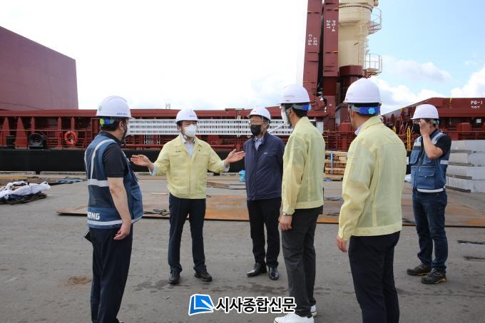 ¹Ú »çÀåÀº 5ÀÏ ÇÏÆ÷ÀÏ¹ÝºÎµÎ¿Í ÇØ¾ç»ê¾÷Ŭ·¯½ºÅͺεÎ, Æ÷½ºÄÚ Á¦Ç°ºÎµÎ ¹× ¿ø·áºÎµÎ µîÀ» ¹æ¹®ÇØ Ç׸¸ ÀÛ¾÷ÇöÀå¿¡ ´ëÇÑ ¾ÈÀü Á¡°ËÀ» ½Ç½ÃÇß´Ù.¶ÇÇÑ ºÎµÎ¿î¿µ °ü°èÀÚ, Ç׸¸±Ù·ÎÀÚµé°ú ¸¸³ª ¾Ö·Î»çÇ× µî ÇöÀåÀÇ ¸ñ¼Ò¸®¸¦ ûÃëÇÏ°í ¾ÈÀü»ç°í¿¡ ´ëÇÑ Ã¶ÀúÇÑ ´ëºñ¸¦ ´çºÎÇÏ´Â ½Ã°£À» °¡Á³´Ù.