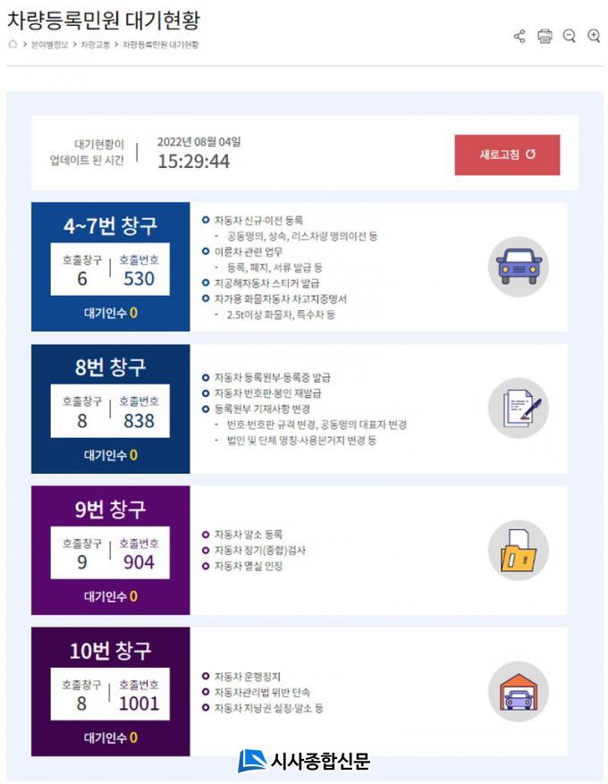7ÀÏ ºÏ±¸¿¡ µû¸£¸é Â÷·®µî·Ï¹Î¿ø½Ç ³» ºñÄ¡µÈ ÅÍÄ¡Çü Ű¿À½ºÅ©(¼ø¹ø¹ß±Ç±â)¿Í ±¸ ȨÆäÀÌÁö¸¦ ¿¬µ¿ÇØ, PC³ª ¸ð¹ÙÀÏ·Î ¹Î¿ø´ë±âÇöȲÀ» ½Ç½Ã°£À¸·Î È®ÀÎÇÒ ¼ö ÀÖ´Â ½Ã½ºÅÛÀ» Á¦°øÇϰí ÀÖ´Ù.