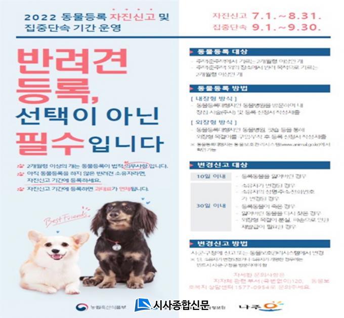 ÇÑÆí, ³ªÁֽô ÀÚÁø ½Å°í ±â°£ Á¾·á ÀÌÈÄÀÎ 9¿ù ÇÑ ´Þ °£ µ¿¹° ¹Ìµî·Ï ¹× º¯°æ»çÇ× ¹Ì ½Å°íÀÚ¿¡ ´ëÇÑ ÁýÁߴܼÓÀ» ½Ç½ÃÇÒ ¹æÄ§ÀÌ´Ù.³ªÁֽà °ü°èÀÚ´Â ¡°¹Ý·Áµ¿¹° µî·ÏÀº ¼±ÅÃÀÌ ¾Æ´Ñ Çʼö»çÇ×À¸·Î À̹ø ½Å°í ±â°£ ¿î¿µÀ» ÅëÇØ ¼ÒÀ¯ÀÚÀÇ Ã¥ÀÓÀÇ½Ä °íÃë µî ¼º¼÷ÇÑ ¹Ý·Áµ¿¹° ¹®È°¡ È®»êµÇ±æ ±â´ëÇÑ´Ù¡±°í ¹àÇû´Ù.