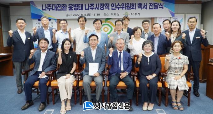 ³ªÁֽô À̳¯ ½Ãû»ç ÀÌȽǿ¡¼ ¡®¹Î¼± 8±â ³ªÁÖ½ÃÀåÁ÷ ÀμöÀ§¿øÈ¸ Ȱµ¿ ¹é¼ Àü´Þ½Ä¡¯À» °¡Á³´Ù°í ¹àÇû´Ù. Àü´Þ½Ä¿¡´Â À±º´Å ½ÃÀå°ú ¿©¼º±¸ ÀμöÀ§¿øÀå, ÀμöÀ§¿ø µî 20¿©¸íÀÌ Âü¼®Çß´Ù.