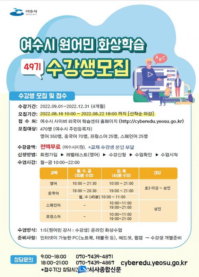 ¿Ü±¹¾î ±³À°ºñ ºÎ´ã µîÀ¸·Î ¸Á¼³ÀÌ´ø ½Ã¹Î°ú Çкθðµé¿¡°Ô ²ÙÁØÇÑ Àα⸦ ²ø°í ÀÖ´Â ÇÁ·Î±×·¥ Áß ÇϳªÀÌ´Ù. ½Ã´Â ±âÁ¸ 2°³ ¾ð¾î¸¦ 4°³ ¾ð¾î(¿µ¾î, Áß±¹¾î, ½ºÆäÀξî, ÇÁ¶û½º¾î) °úÁ¤À¸·Î È®´ëÇϰí ȨÆäÀÌÁöµµ »õ·Ó°Ô °³ÆíÇß´Ù. ¸ðÁý Àοøµµ ±âÁ¸ 400¸í¿¡¼ 70¸í Áõ¿øµÈ 470¸íÀ» ¸ðÁýÇÒ ¿¹Á¤ÀÌ´Ù. ÃʵîÇб³ 3Çгâ ÀÌ»ó ¿©¼ö½Ã¹ÎÀÌ¸é ´©±¸³ª ½Åû °¡´ÉÇÏ´Ù. ±â¼öº° 4°³¿ù °úÁ¤À¸·Î 1³â ÃÑ 3±â°¡ ¿î¿µµÇ¸ç, À̹ø ±â¼ö´Â 9¿ù 1ÀÏ ½ÃÀÛÇØ 12¿ù 31ÀÏ ¸¶¹«¸® µÈ´Ù.