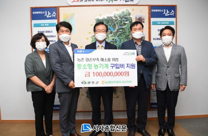10ÀÏ ¿ÏÁÖ±ºÀº NH³óÇù ÀüÁÖ¿ÏÁֽñºÁöºÎ°¡ Áß¼ÒÇü³ó±â°è »ç¾÷ºñÀÇ 50%¸¦ ºÎ´ãÇÏ´Â Áö¿ªÇù·Â»ç¾÷ Çù¾àÀ» Áö³ 9ÀÏ Ã¼°áÇß´Ù°í ¹àÇû´Ù. À̳¯ Çù¾à¿¡ µû¶ó NH³óÇù ÀüÁÖ¿ÏÁֽñºÁöºÎ´Â »ç¾÷ºñ 1¾ï ¿øÀ» ¿ÏÁÖ±º¿¡ Àü´ÞÇß´Ù.