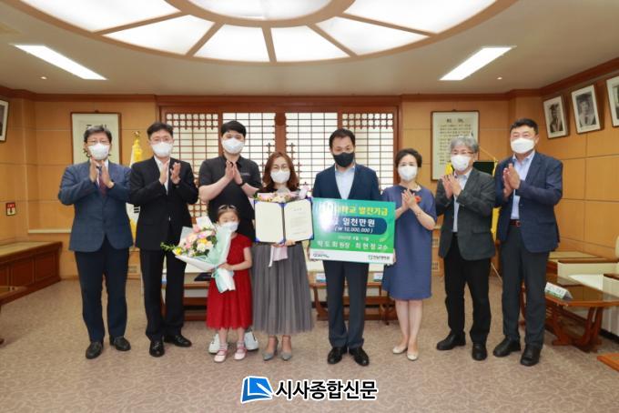 [½Ã»çÁ¾ÇսŹ® = ¿À½ÂÅà ±âÀÚ] ¹ÚµµÈ¸ Á¶¿¬À̺ñÀÎÈİú º´¿øÀå°ú ÃÖÇöÁ¤ Àü³²´ë ±³¼ö(Àǰú´ëÇÐ) ºÎºÎ°¡ 8¿ù 11ÀÏ ¸ð±³ÀÎ Àü³²´ëÇб³¿¡ ¹ßÀü±â±Ý 1õ¸¸ ¿øÀ» ±âºÎÇß´Ù.