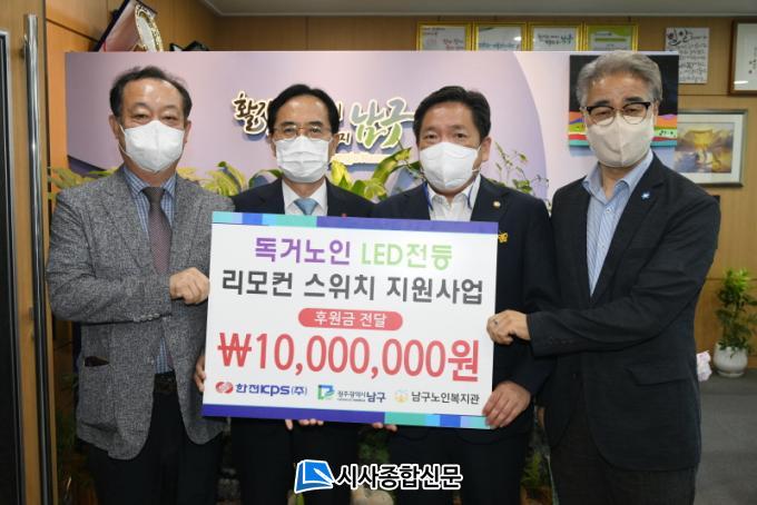 12ÀÏ ³²±¸¿¡ µû¸£¸é Áö³ 11ÀÏ ¿ÀÈÄ ±¸Ã»¿¡¼ ¡®µ¶°Å³ëÀÎ LED Àüµî ¸®¸ðÄÁ ½ºÀ§Ä¡ Áö¿ø »ç¾÷¡¯ Àü´Þ½ÄÀÌ ¿·È´Ù. Àü´Þ½Ä¿¡´Â ±èº´³» ±¸Ã»ÀåÀ» ºñ·ÔÇØ ÇÑÀüKPS¿Í ³²±¸³ëÀκ¹Áö°ü °ü°èÀÚµéÀÌ Âü¼®ÇßÀ¸¸ç, ÇÑÀüKPS´Â À̳¯ LED Àüµî ¹× ´©¿ö¼µµ ÀüµîÀ» ÄÑ°í ²ø ¼ö ÀÖ´Â ¸®¸ðÄÁ ½ºÀ§Ä¡ Áö¿ø »ç¾÷ ÈÄ¿ø±Ý 1,000¸¸¿øÀ» Àü´ÞÇß´Ù.