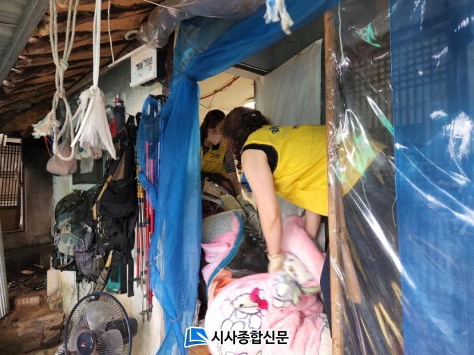 À̳¯ ºÀ»ç´Â ȸ¿ø 10¿© ¸íÀÌ Âü¿©ÇÑ °¡¿îµ¥ Ȧ·Î °ÅÁÖÇÏ´Â 80´ë ³²¼º ¾î¸£½Å ´ì¿¡¼ ÀÌ·ïÁ³´Ù. ȸ¿øµéÀº ¾î¸£½Å ´ìÀÇ ³°°í ¿À·¡µÈ ¹°°ÇÀ» Á¤¸®ÇÏ°í ¿©¸§Ã¶ ½À±â·Î »ý±ä °õÆÎÀ̸¦ Á¦°ÅÇÏ´Â µî ´õ¿î ³¯¾¾¿¡µµ ºÒ±¸ÇÏ°í ºÀ»ç Ȱµ¿¿¡ ±¸½½¶¡À» Èê·È´Ù. ¶Ç, ȸ¿øµéÀº ¾î¸£½ÅÀÇ ³°Àº À̺ÒÀ» »õ°ÍÀ¸·Î ±³Ã¼Çϰí, °¡½º·¹ÀÎÁö±îÁö ±âÁõÇß´Ù.