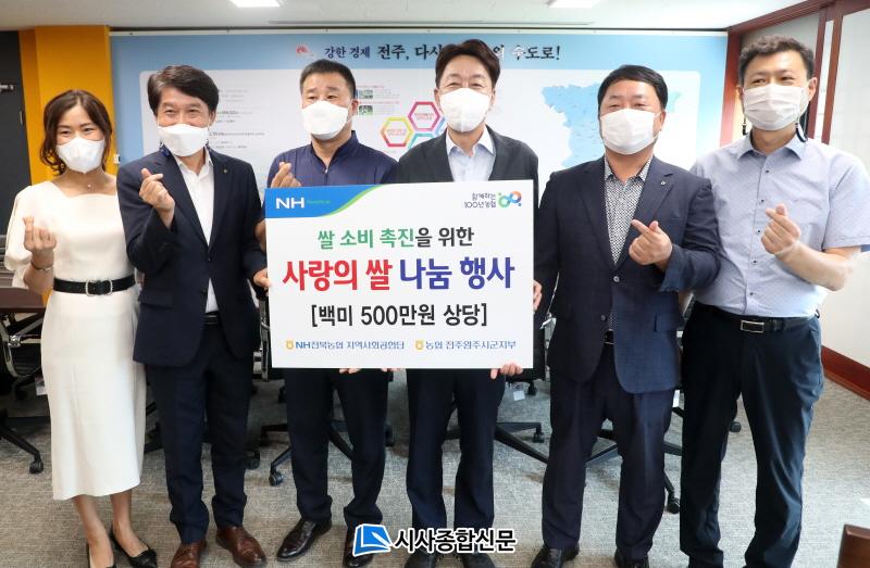 [½Ã»çÁ¾ÇսŹ® = ¿À½ÂÅà ±âÀÚ] NH ÀüºÏ³óÇù Áö¿ª»çȸ°øÇå´Ü(´ÜÀå ¹Úº´Ã¶ ³ëÁ¶À§¿øÀå)°ú ³óÇù ÀüÁÖ¿ÏÁֽñºÁöºÎ(ÁöºÎÀå ¼ÛÇõ)°¡ 18ÀÏ ÀüÁÖ½ÃÀå½Ç¿¡¼ Àú¼Òµæ Ãë¾à°èÃþÀ» À§ÇÑ ¹é¹Ì 10kg 200Æ÷(500¸¸ ¿ø »ó´ç)¸¦ ±âºÎÇß´Ù.