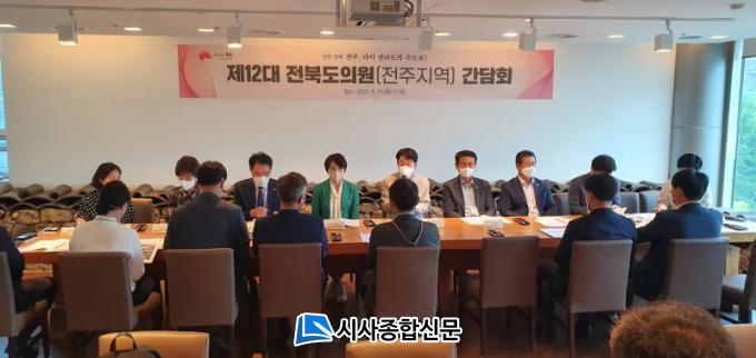 ÀüÁֽô 23ÀÏ ±¹ÁÖ¿µÀº ÀüºÏµµÀÇȸ ÀÇÀåÀ» ºñ·ÔÇÑ ÀüÁÖ Áö¿ª µµÀÇ¿ø°ú ºñ·Ê´ëÇ¥ µµÀÇ¿ø µîÀ» ÃÊÃ»ÇØ ¹Î¼± 8±â ½ÃÁ¤¹æÇâÀ» ¼³¸íÇϰí Áö¿ª Çö¾È ÇØ°áÀ» À§ÇÑ ÇØ¹ýÀ» ¸ð»öÇÏ´Â °£´ãȸ¸¦ °³ÃÖÇß´Ù.