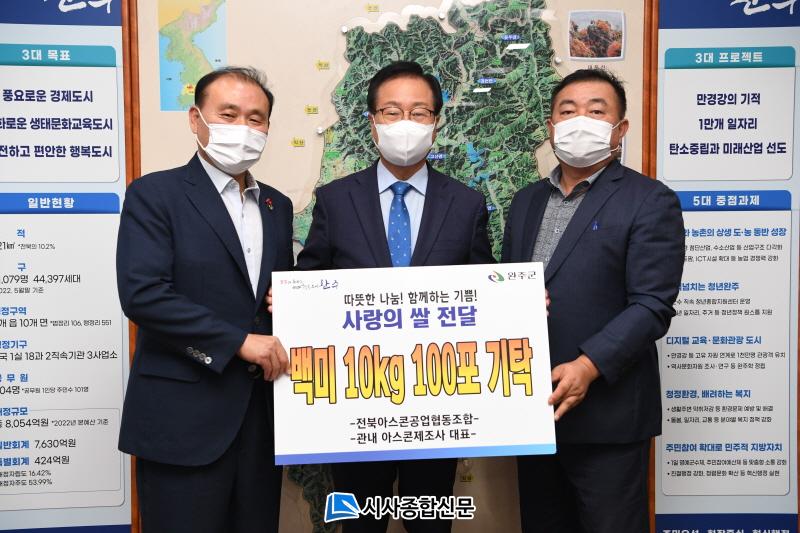 [½Ã»çÁ¾ÇսŹ® = ¿À½ÂÅà ±âÀÚ] ÀüºÏ¾Æ½ºÄܰø¾÷Çùµ¿Á¶ÇÕ(ÀÌ»çÀå ±è¿µÃµ)ÀÌ ¿ÏÁÖ±ºÀ» ¹æ¹®ÇØ »ç¶ûÀÇ ½Ò 10kg 100Æ÷¸¦ ±âŹÇß´Ù.