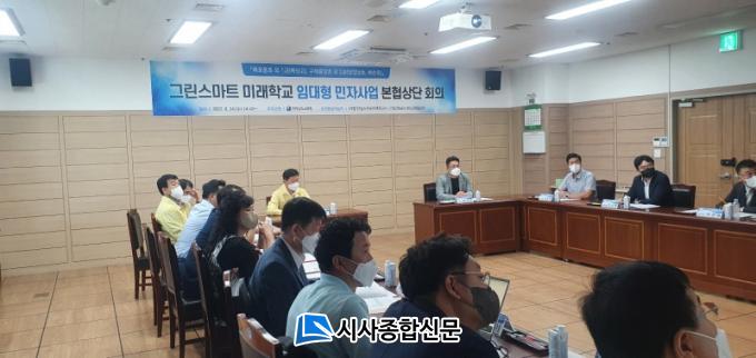 [½Ã»çÁ¾ÇսŹ® = ¿À½ÂÅà ±âÀÚ] Àü¶ó³²µµ±³À°Ã»ÀÌ 2021³âµµ ±×¸°½º¸¶Æ® ¹Ì·¡Çб³ ÀÓ´ëÇü ¹Î°£ÅõÀÚ»ç¾÷(BTL)ÀÇ º»°ÝÀûÀÎ ÃßÁøÀ» À§ÇØ 8¿ù 24ÀÏ(¼ö) µµ±³À°Ã» ÁßȸÀǽǿ¡¼ 3°³ »ç¾÷ÀÇ ¿ì¼±Çù»ó´ë»óÀÚ¿Í »ó°ß·Ê¸¦ °®°í 1Â÷ º»Çù»óÀ» ½ÃÀÛÇß´Ù.