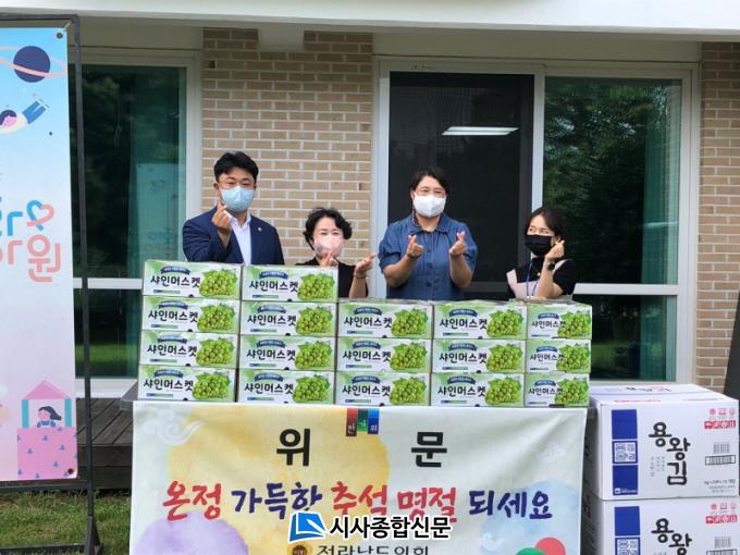 [½Ã»çÁ¾ÇսŹ® = ¿À½ÂÅà ±âÀÚ] Àü¶ó³²µµÀÇȸ ±èÈ£Áø ÀÇ¿ø(´õºÒ¾î¹ÎÁÖ´ç, ³ªÁÖ1)ÀÌ 25ÀÏ Ãß¼®À» ¾ÕµÎ°í ³ªÁֽà ¼ÒÀç ¾Æµ¿º¹Áö½Ã¼³ÀÎ ÀÌÈ¿µ¾Æ¿øÀ» ¹æ¹®ÇØ À§¹®Ç°À» Àü´ÞÇÏ°í °ü°èÀÚµéÀ» °Ý·ÁÇß´Ù.