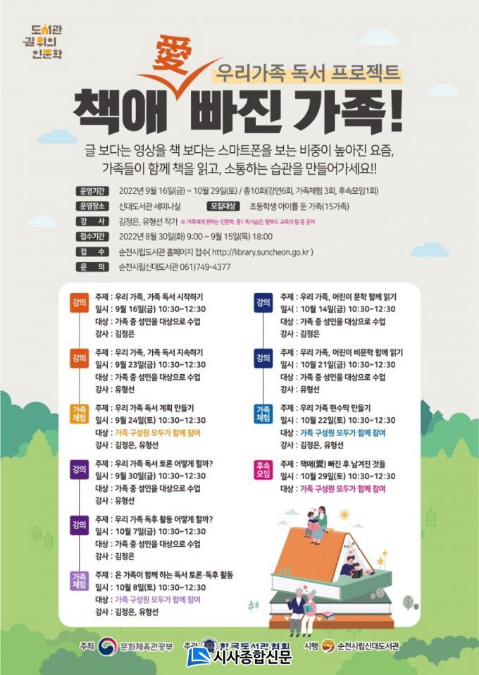 À̹ø ÇÁ·Î±×·¥Àº ½Å´ëµµ¼°ü ¼¼¹Ì³ª½Ç¿¡¼ ´ë¸éÀ¸·Î ¿î¿µµÇ¸ç, 9¿ù 16ÀϺÎÅÍ 10¿ù 29ÀϱîÁö ÃÑ 10ȸ·Î ÁøÇàÇÑ´Ù. ÇÁ·Î±×·¥ÀÇ °»ç¸¦ ¸ÃÀº ±èÁ¤Àº, À¯Çü¼± ºÎºÎ ÀÛ°¡°¡ °¡Á·µ¶¼¸¦ ½ÃÀÛÇϰí Áö¼ÓÇÒ ¼ö ÀÖµµ·Ï °¡Á·µ¶¼ÀÇ ¹æ¹ý·ÐÀ» °¿¬Çϰí, °³º° °¡Á·Àº Á÷Á¢ ¸¸µç °¡Á·µ¶¼ °èȹÀ» Åä´ë·Î °¡Á·¿¡°Ô Ã¥ ÀоîÁÖ±âºÎÅÍ ÇÔ²² Àбâ¿Í µ¶¼Åä·Ð±îÁö °¡Á·µ¶¼ ¹æ¹ýÀ» Á÷Á¢ üÇèÇØ º¸´Â ½Ã°£À» °¡Áú ¿¹Á¤ÀÌ´Ù.