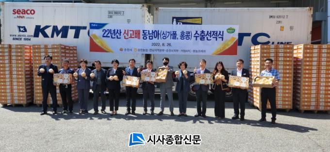 ½ÂÁÖÀ¾ ¼ÒÀç °ú¼ö°ÅÁ¡»êÁöÀ¯Åë¼¾ÅÍ(APC)¿¡¼ ±è¼ºÈ£ ¼øÃµ¹è¼öÃâ°ø¼±È¸Àå, ±è¿µÁø ¼øÃµ½ÃÀÇȸ ¹®È°æÁ¦À§¿øÀå, À̱âÁ¤ ³ó¾÷±â¼ú¼¾ÅͼÒÀå, °¼ºÃ¤ ¼øÃµ³óÇùÀå, ±è¿øÀÏ NH³óÇù Àü³²Áö¿ª ºÎº»ºÎÀå, ¼öÃâ °ü°èÀÚ µî 30¿© ¸íÀÌ Âü¼®ÇØ ´ëÇѹα¹ »ýżöµµ ÀÏ·ù¼øÃµÀÇ ¸íǰ ¹è ¼öÃâ ¼±Àû½ÄÀ» °¡Á³´Ù.