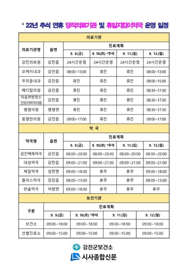 ¿¬ÈޱⰣ º¸°Ç¼Ò¿¡¼´Â ºñ»óÁø·á »óȲ½ÇÀ» ¿î¿µÇØ ´çÁ÷ÀÇ·á±â°ü ¹× ÈÞÀÏÁöÅ´ÀÌ ¾à±¹À» ¾È³»Çϰí, ¸ÅÀÏ ºñ»óÁø·á(09:00¡18:00)¿Í ¼±º°Áø·á¼Ò(09:00¡15:00)¸¦ ¿î¿µÇØ ±º¹ÎµéÀÇ ºÒÆíÀ» ÃÖ¼ÒÈÇÒ ¹æÄ§ÀÌ´Ù.