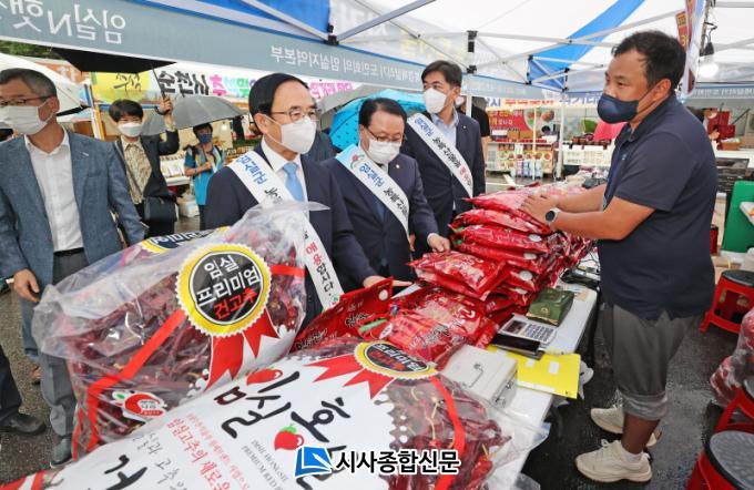 ÇÑÆí, ½É ¹Î ±º¼ö´Â¡°À̹ø Ãß¼®¸ÂÀÌ Á÷°Å·¡Çà»ç´Â ¸íÀýÀ» ÁغñÇÏ´Â µµ½Ã¼ÒºñÀÚµéÀÇ ºÎ´ãÀ» ´ú¾îÁÖ´Â µ¿½Ã¿¡ ÀӽDZº ³óƯ»ê¹° È«º¸¿¡ ±â¿©ÇÏ´Â ¿ªÇÒÀ» ÅåÅåÈ÷ ÇØ³»°í ÀÖ´Ù¡±¸ç¡°Çâ¿ìȸ¸¦ Áß½ÉÀ¸·Î °íÇâ»ç¶û ±âºÎÁ¦ È«º¸µµ °ÈÇØ ³ª°¡°Ú´Ù¡±°í ¸»Çß´Ù.