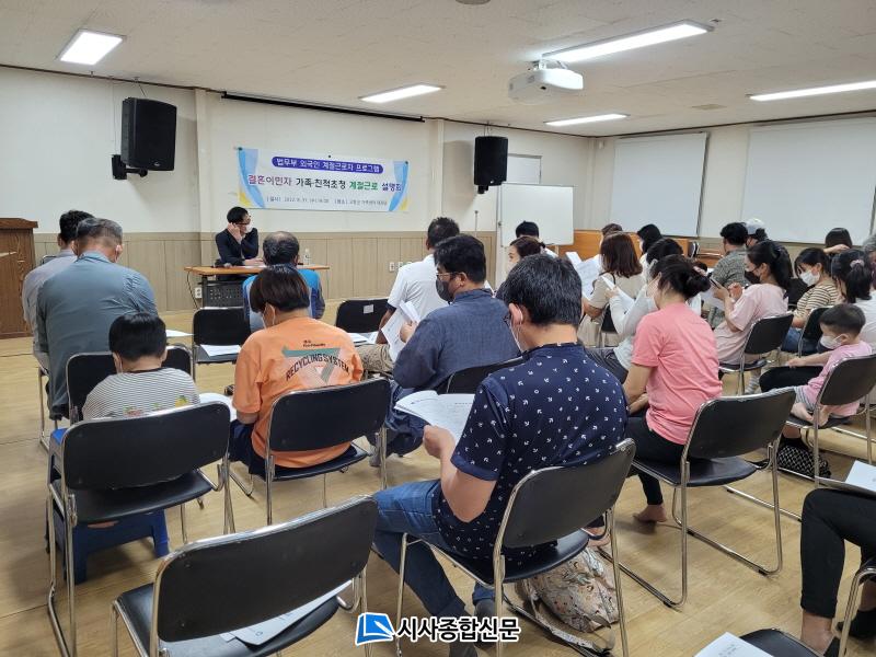 1ÀÏ °íⱺ¿¡ µû¸£¸é Àü³¯(31ÀÏ) ¿ÀÈÄ °íⱺ °¡Á·¼¾ÅÍ Áö¿ª³» °áÈ¥À̹ÎÀÚ¿Í ¹è¿ìÀÚ µî 50¿©¸íÀÌ Âü¼®ÇÑ °¡¿îµ¥ ¿Ü±¹ÀÎ °èÀý±Ù·ÎÀÚ ÇÁ·Î±×·¥ ¼³¸íȸ°¡ ¿·È´Ù. ¼³¸íȸ´Â ¿Ü±¹ÀÎ °èÀý±Ù·ÎÀÚ ÇÁ·Î±×·¥ ¼³¸í, ¿Ü±¹ÀÎ °èÀý±Ù·ÎÀÚ ¼ö±Þ ¹æ½Ä Áß °áÈ¥À̹ÎÀÚÀÇ º»±¹¿¡ °ÅÁÖÇÏ´Â °¡Á· ¹× ģôÀ» ÃÊûÇÏ´Â ÀýÂ÷, ÁúÀÇÀÀ´ä ¼øÀ¸·Î ÁøÇàµÆ´Ù.