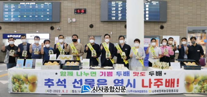 [½Ã»çÁ¾ÇսŹ® = À¯µ¿±¹ ±âÀÚ] À±º´Å ³ªÁÖ½ÃÀåÀº 2ÀÏ ¿ÀÈÄ 4½ÃºÎÅÍ KTX³ªÁÖ¿ª¿¡¼ ÁøÇàµÈ ¡®³ªÁÖ ½ÅÈ¹è ÆÇ¸ÅÀü¡¯¿¡ Âü¿©ÇØ Ãß¼® ¼±¹°¿ë ³ªÁÖ¹è ½Åȸ¦ È«º¸Çß´Ù.