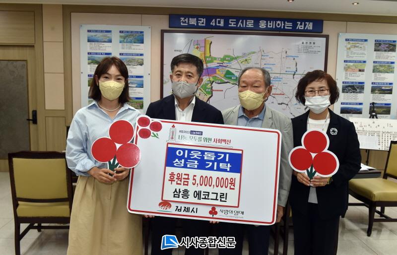 [½Ã»çÁ¾ÇսŹ® = ¿À½ÂÅà ±âÀÚ] ±èÁ¦½Ã ±Ý»ê¸é¿¡ ¼ÒÀçÇϰí ÀÖ´Â (À¯)»ïÈï ¿¡Äڱ׸°(´ëÇ¥ ¼Û¸íÈñ)¿¡¼ °ü³» Àú¼Òµæ °¡Á¤¿¡ Áö¿øÇØ´Þ¶ó¸ç 500¸¸¿øÀÇ ¼º±ÝÀ» ±èÁ¦½Ã¿¡ ±âŹÇß´Ù.