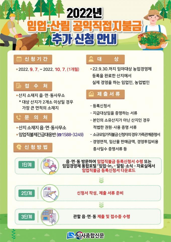 ÀÓ¾÷ Á÷ºÒ±ÝÀº ´Ü±â¼Òµæ Àӻ깰»ý»ê¾÷¿¡ Á¾»çÇÏ´Â Àӻ깰»ý»ê¾÷ Á÷ºÒ±Ý, 3haÀÌ»ó »ê¸²¿¡¼ °æ¿µÇÏ´Â À°¸²¾÷ Á÷ºÒ±ÝÀÌ ÀÖ´Ù. ÀÓ¾÷ Á÷ºÒ±Ý ½ÅûÀÌ ¿Ï·áµÇ¸é ÀÚ°Ý¿ä°Ç °ËÁõÀ» ÅëÇØ 11¿ù±îÁö ´ë»óÀÚ¸¦ È®Á¤Çϰí, Àǹ«»çÇ× ÀÌÇàÁ¡°ËÀ» ÅëÇØ ÃÖÁ¾ ±Ý¾×À» 12¿ù¿¡ Áö±ÞÇÒ ¿¹Á¤ÀÌ´Ù.