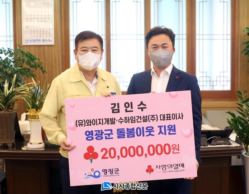 ¿µ±¤±ºÃ» ±º¼ö½Ç¿¡¼ ÁøÇàµÈ Àü´Þ½Ä¿¡´Â °Á¾¸¸ ¿µ±¤±º¼ö, ±èÀμö ´ëÇ¥ÀÌ»ç, À嵿¿ì ¿µ±¤ ¾Æ³Ê¼Ò»çÀÌ¾îÆ¼ ȸ¿ø, ±èµ¿±Ø Àü³²»çȸº¹Áö°øµ¿¸ð±Ýȸ »ç¹«Ã³Àå µîÀÌ Âü¼®ÇßÀ¸¸ç, À̳¯ Àü´ÞµÈ ¼º±ÝÀº ¿µ±¤±º µ¹º½ÀÌ¿ô º¹Áö»ç¾÷ºñ·Î »ç¿ëµÉ ¿¹Á¤ÀÌ´Ù.