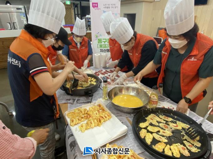 À̹ø ÇÁ·Î±×·¥Àº 8¿ù 30ÀϺÎÅÍ 9¿ù 7ÀϱîÁö µ¿±¸Àι®Çдç, Ǫ¸¥°³¹Ì´Ù¶ô, »ê¼ö1µ¿¡¤Áö»ê1µ¿¡¤Çп¡¤Áö¿ø1µ¿ ¸¶À»»ç¶ûä 6°³ÀÇ °ÅÁ¡¿¡¼ 50¿©¸íÀÇ ÀÚ¿øºÀ»çÀÚ°¡ 60¸íÀÇ È¦¸ö ¾î¸£½ÅÀ» ´ë»óÀ¸·Î ÁøÇàÇÏ¿´À¸¸ç, Äڷγª19 ¹æÁö¸¦ À§ÇØ È¦¸ö ¾î¸£½Å°ú ÀÚ¿øºÀ»çÀÚ°¡ ÇÔ²² ½Ä»çÇÏ´Â ´ë½Å ¸íÀý À½½ÄÀ» ³ª´©¸ç dz¼ºÇÏ°í °Ç°ÇÑ Ãß¼®À» º¸³» ±æ ¹Ù·¡´Â ´ö´ãÀ» ³ª´³´Ù.