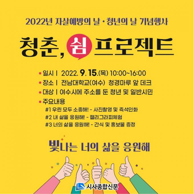 À̹ø Çà»ç´Â Á¦2ȸ û³âÀÇ ³¯(9¿ù 17ÀÏ)°ú Àڻ쿹¹æÀÇ ³¯(9¿ù 10ÀÏ)À» ±â³äÇϱâ À§ÇØ ¸¶·ÃµÆ´Ù. Àü³²´ëÇб³ ÀçÇлýÀº ¹°·Ð ¿©¼ö½Ã¿¡ ÁÖ¼Ò¸¦ µÐ û³â°ú ÀϹݽùΠ´©±¸³ª Âü¿©ÇÒ ¼ö ÀÖ´Ù. ¡ã¿ì¸° ¸ðµÎ ¼ÒÁßÇØ! ¡®»çÁøÃÔ¿µ ¹× Áï¼®ÀÎÈ¡¯ ¡ã³» »îÀ» ÀÀ¿øÇØ! ¡®Ä¶¸®±×¶óÇÇ Ã¼Ç衯 µî ûÃáµéÀÇ ÁöÄ£ ÀÏ»óÀ» ÀÀ¿øÇÏ´Â ÇÁ·Î±×·¥ÀÌ ÁغñµÅÀÖ´Ù.