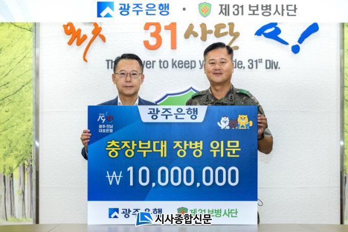 [½Ã»çÁ¾ÇսŹ® = ¿À½ÂÅà ±âÀÚ] ±¤ÁÖÀºÇà(ÀºÇàÀå ¼ÛÁ¾¿í)Àº ÃÖ±Ù Áö¿ª ÇâÅäºÎ´ëÀÎ Á¦31º¸º´»ç´Ü(»ç´ÜÀå ÃÖ¼ø°Ç)À» ¹æ¹®ÇØ ±ººÎ´ë À庴µéÀÇ ³ë°í¿¡ °¨»çÀÇ ¶æÀ» ´ã¾Æ 1õ¸¸¿øÀÇ À§¹®±ÝÀ» Àü´ÞÇß´Ù°í ¹àÇû´Ù.