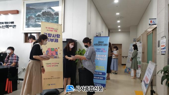 ½Ã´Â Áö³ 2ÀϱîÁö 7°³ ±Ç¿ªº°·Î ÁøÇàµÈ ½Ã¹Î°úÀÇ ´ëȸ¦ ÅëÇØ °íÇâ»ç¶û±âºÎÁ¦¸¦ ¾È³»Çϸç Âü¼®ÀÚ°¡ ¿ÜÁö °ÅÁÖ °¡Á·, ÁöÀÎ µî¿¡°Ô È«º¸ÇÏ´Â ºÐÀ§±â Á¶¼º¿¡ Èû½è´Ù. ¶Ç µµ½É °÷°÷¿¡ Ç÷¡Ä«µå¸¦ °ÔÃ·ÇØ Ãß¼®À» ¸Â¾Æ °íÇâÀ» ãÀº ±Í¼º°´¿¡°Ô °íÇâ»ç¶û±âºÎÁ¦¸¦ ¾È³»Çß´Ù.