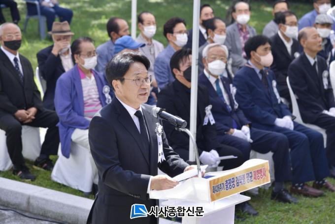 ° ½ÃÀåÀº Ã߸ð»ç¸¦ ÅëÇØ ¡°³ª¶ó°¡ ¹éõ°£µÎÀÇ À§±â¿¡ ³õÀÎ »óȲ¿¡¼ À屺ÀÇ ÀÇ·Î¿î ±â¹éÀº ½Ã´ëÀÇ ¾îµÒÀ» ¹àÈ÷´Â µîºÒÀ̾ú´Ù¡±¸ç ¡°À屺ÀÇ È£±¹ÃæÀýÀÇ Á¤½ÅÀ» ÀÌ¾î ¿ì¸® Èļյ鵵 Áö±ÝÀÇ ±¤ÁÖ¸¦ ÀÚ¶û½º·¯¿î ¿ª»ç·Î ±â¾ïÇÒ ¼ö ÀÖµµ·Ï ¿ìÁ÷ÇÏ°í ´ç´çÇÏ°Ô »õ·Î¿î ±¤Áֽô븦 ¿¾î°¡°Ú´Ù¡±°í ¸»Çß´Ù.