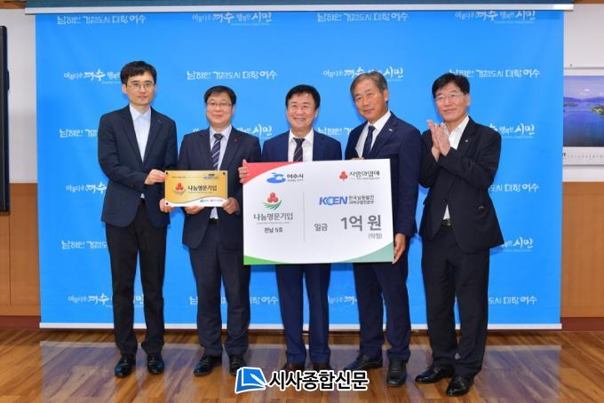 Á¤±â¸í ½ÃÀåÀº ¡°¿¾ÇÇÑ È¯°æ¿¡¼ »ýȰÇÏ´Â ¾î·Á¿î ÀÌ¿ôµéÀ» À§ÇØ ¸Å³â ¾ÈÀüÇÑ º¸±ÝÀÚ¸®¸¦ ¸¶·ÃÇØÁֽô Çѱ¹³²µ¿¹ßÀü(ÁÖ) ¿©¼ö¹ßÀüº»ºÎ¿¡ °¨»çµå¸°´Ù¡±¸ç ¡°¿À´Ã ³ª´®¸í¹®±â¾÷ °¡ÀÔÀ» ÃàÇϵ帮¸ç, Áö¿ª»çȸ °÷°÷¿¡ ±â¾÷ÀÇ ¼±ÇÑ ¿µÇâ·ÂÀÌ ³Î¸® ÆÛÁ® ³ª±æ ¹Ù¶õ´Ù¡±°í ¸»Çß´Ù.