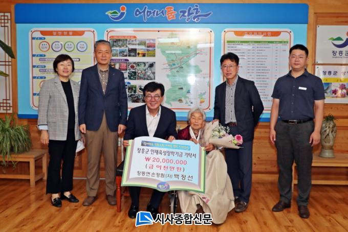 [½Ã»çÁ¾ÇսŹ® = ¿À½ÂÅà ±âÀÚ] ÀåÈﱺ À嵿¸é ¼ÕÁ¤¸², ¹éÁ¤¼± ¸ðÀÚ°¡ Áö³ 15ÀÏ 2õ¸¸¿øÀÇ ÀåÇбÝÀ» ÀåÈﱺÀÎÀçÀ°¼ºÀåÇÐȸ¿¡ ±âºÎÇß´Ù.