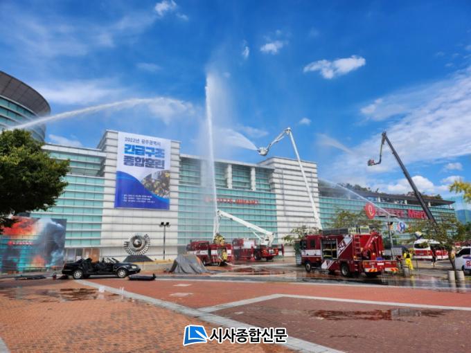 ´ëÀÀ1´Ü°è ¹ß·ÉÀ¸·Î ¼ºÎ¼Ò¹æ¼ Àü ¼Ò¹æ·ÂÀÌ Ã⵿ÇÑ »óȲ¿¡¼ ÈÀç, Æø¹ß Àç³ ±Ô¸ð°¡ Ä¿Áö´Â °ÍÀ¸·Î °¡Á¤ÇØ ±¸Ã», º¸°Ç¼Ò, °æÂû¼ µî ±ä±Þ±¸Á¶Áö¿ø±â°üÀÌ Âü¿©ÇÏ°í ±¤Áֽà ±ä±Þ±¸Á¶ÅëÁ¦´ÜÀÌ °¡µ¿µÇ´Â ´ëÀÀ2´Ü°è ÈÆ·ÃÀ» ½Ç½ÃÇß´Ù.