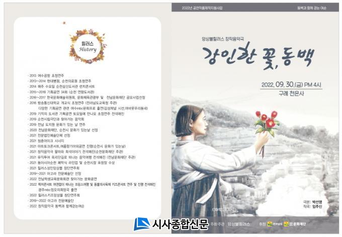 Áö³ÇØ¿¡ ÀÌ¾î µÎ ¹øÂ°·Î ¿¸®´Â À̹ø °ø¿¬Àº ¡®°ÀÎÇÑ ²É, µ¿¹é¡¯À̶ó´Â ÁÖÁ¦·Î °³ÃֵȴÙ. ¿©¼ø»ç°ÇƯº°¹ý ½ÃÇàÀ» ±â¾ïÇÏ°í ºñ±ØÀûÀÎ ¿ª»çÀÇ ÇöÀåÀ» Àü´ÞÇϰí À§·ÎÇϱâ À§ÇØ ¡®¿©¼ö ´ÙÅ©Åõ¾î¸®Áò¡¯ ÄÚ½º¸¦ Áß½ÉÀ¸·Î ½ºÅ丮ÅÚ¸µÇÏ¿© À½¾Ç°ú ¿ª»ç¸¦ Á¢¸ñÇÑ Ã¢ÀÛÀ½¾Ç±ØÀ¸·Î ±âȹÇÏ¿´´Ù.